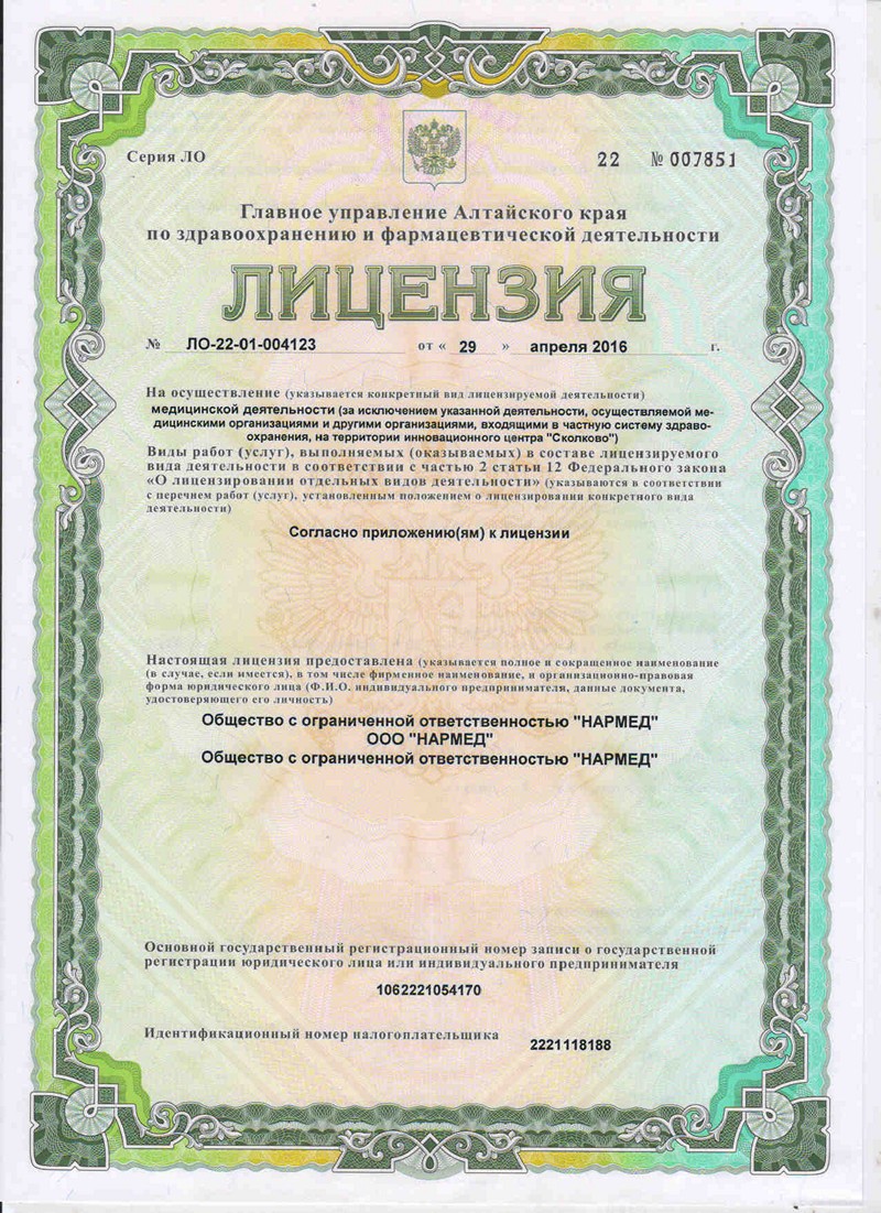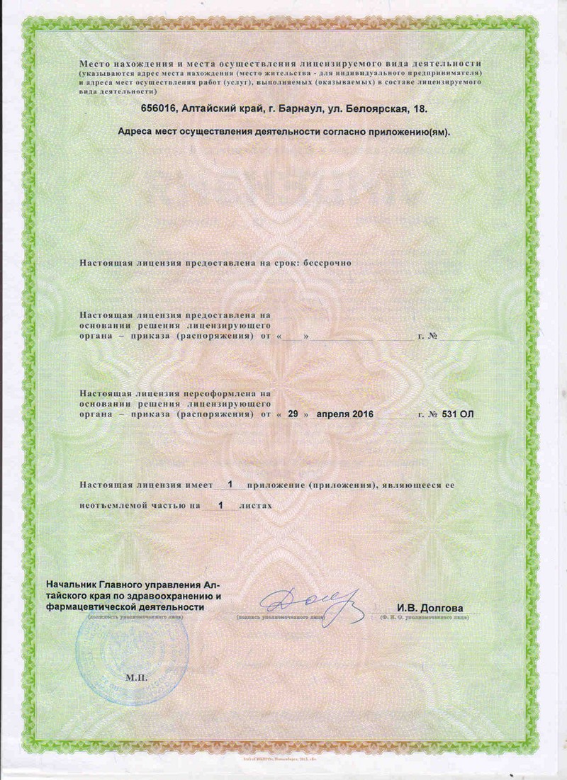ЛИЦЕНЗИЯ ЛО-22-01-004123 от 29.04.2016